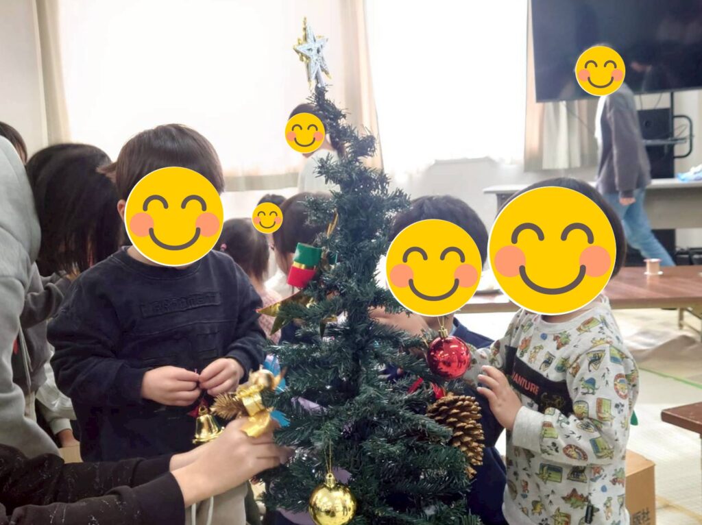 その後、クリスマスツリーの飾り付けを3チームで行いました。